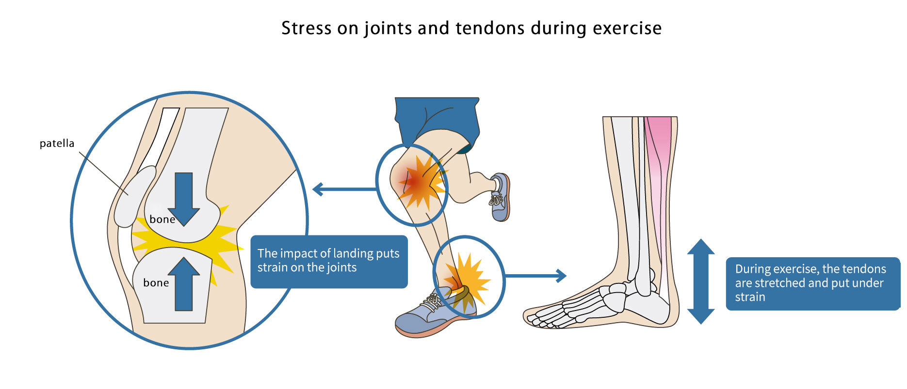 It is known that muscles are stressed when you do unfamiliar exercise or hard training, but it is not just muscles that are stressed. The "joints" that connect bones and the "tendons" that connect muscles and bones are also stressed by exercise. In this article, we will explain why joints and tendons are affected by exercise performance.