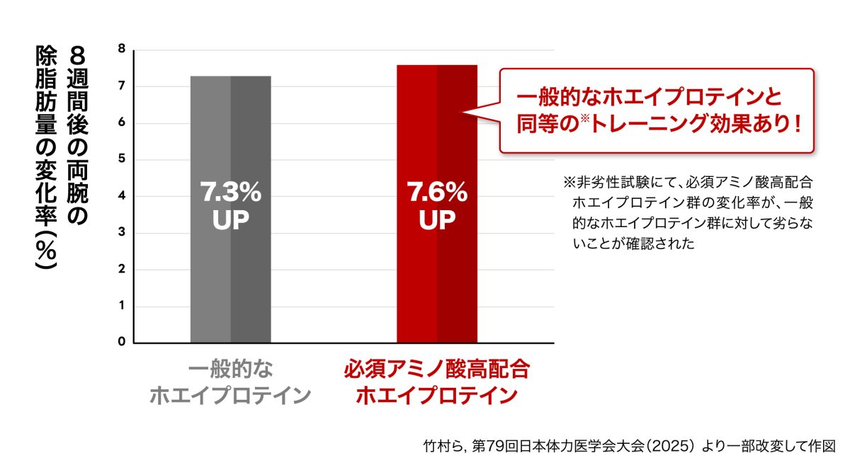 - ・EAA高配合ホエイプロテインは、少量・高効率で筋肉合成をサポート